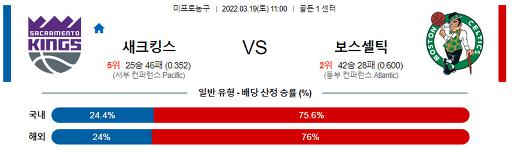열람중 3월 19일 NBA분석 새크라멘토 : 보스턴 2022.03.18 388