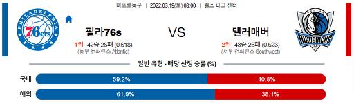 3월 19일 08:00 NBA분석 필라델피아 : 댈러스