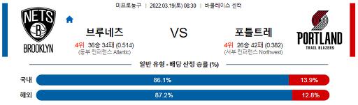 열람중 3월 19일 NBA분석 브루클린 : 포틀랜드 2022.03.18 484