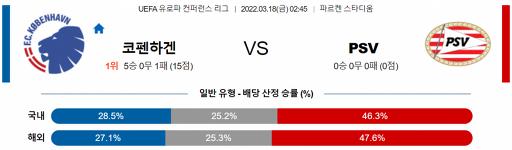 UEFA 유로파리그 3월 18일 02:45 FC 코펜하겐 : PSV 에인트호번