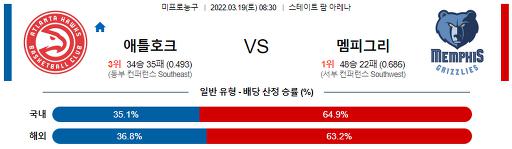 3월 19일 NBA분석 애틀랜타 : 멤피스