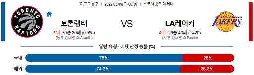 열람중 3월 19일 NBA분석 토론토 : LA레이커스 2022.03.18 433