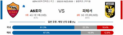 UEFA 유로파리그 3월 18일 05:00 AS 로마 : 비테세아른험