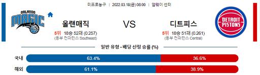 3월 18일 08:00 NBA분석 올랜도 : 디트로이트
