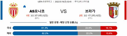 UEFA 유로파리그 3월 18일 02:45 AS 모나코 : SC 브라가