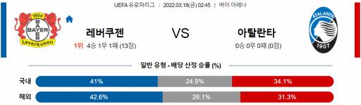 UEFA 유로파리그 3월 18일 02:45 레버쿠젠 : 아탈란타 BC