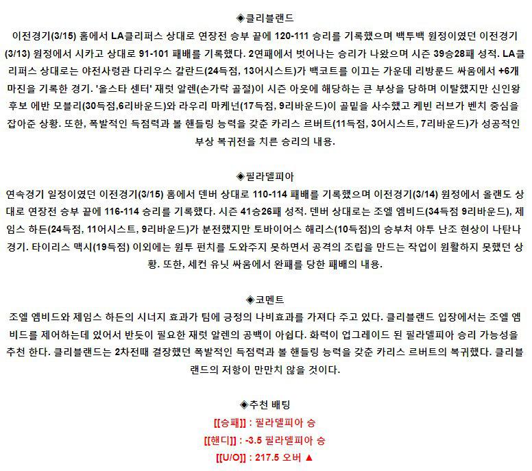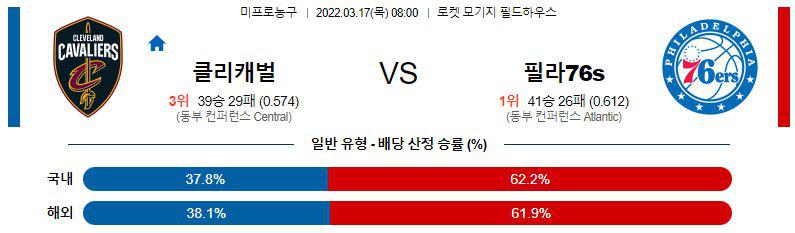 【NBA】 3월17일 클리브랜드 vs 필라델피아