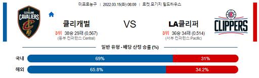 열람중 3월 15일 NBA분석 클리블랜드 : LA클리퍼스 2022.03.15 524