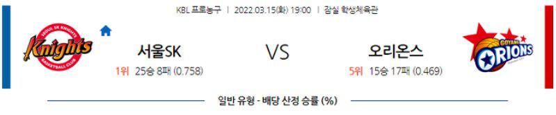 [KBL] 3월 15일 서울 SK vs 오리온스