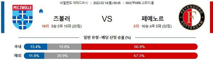 ​[에레디비시] 3월 14일 즈볼레 vs 페예노르트