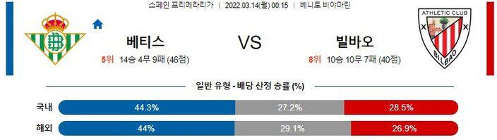 [라리가] 3월 14일 레알 베티스 vs 아틀레틱 빌바오