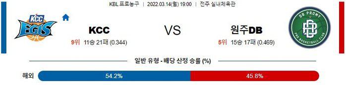 전주KCC는 원주DB 전력의 핵심이 되는 허웅을 쉬지 않고 괴롭힐수 있는 백코트 물량을 보유하고 있고 라건아, 이정현, 정창영의 컨디션이 많이 올라와 있다. 전주KCC 승리 가능성을 추천 한다.