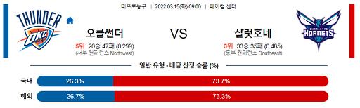열람중 3월 15일 NBA분석 오클라호마 : 샬럿 2022.03.15 615