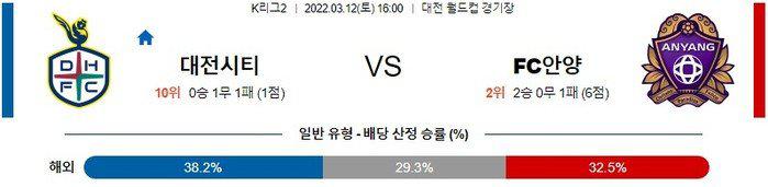 [K리그2] 3월 12일 대전 하나 시티즌 vs 안양