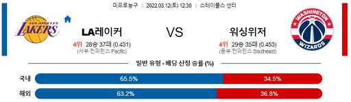 3월 12일 12:30 NBA분석 LA레이커스 : 워싱턴