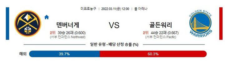 [NBA] 3월11일 덴버 vs 골든스테이트