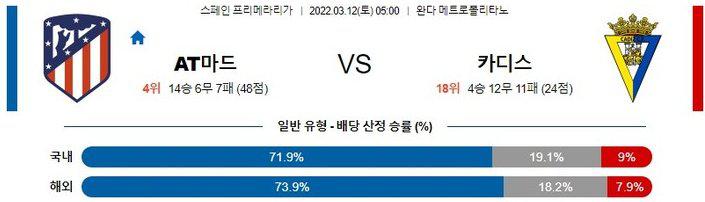 [라리가] 3월 12일 아틀레티코 마드리드 vs 카디스 CF