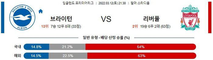 열람중 【프리미어리그】 3월 12일 브라이튼 vs 리버풀 FC 2022.03.11 459