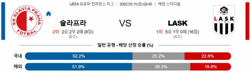 UEFA 유로파리그 3월 11일 02:45 슬라비아 프라하 : LASK 린츠