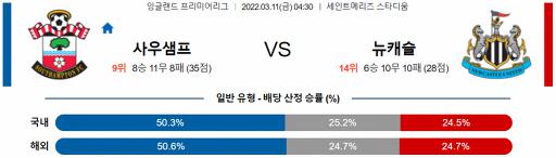 프리미어리그 3월 11일 04:30 사우샘프턴 : 뉴캐슬 유나이티드