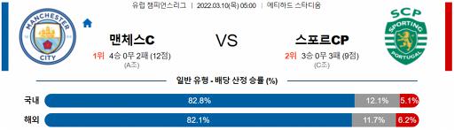 UEFA 챔피언스리그 3월 10일 05:00 맨체스터 시티 : 스포르팅 CP