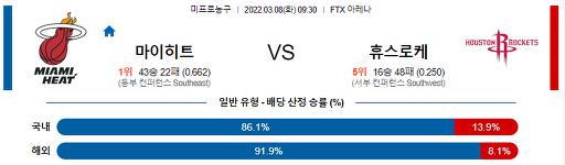 3월 8일 09:30 NBA분석 마이애미 : 휴스턴