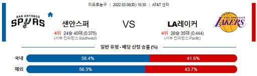3월 8일 10:30 NBA분석 샌안토니오 : LA레이커스