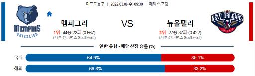 3월 9일 09:30 NBA분석 멤피스 : 뉴올리언스