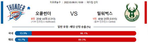 3월 9일 10:00 NBA분석 오클라호마시티 : 밀워키