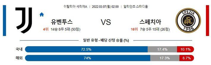 【세리에A】 3월 7일 유벤투스 vs 스페치아