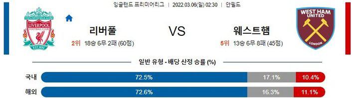열람중 【프리미어리그】 3월 6일 리버풀 vs 웨스트햄 2022.03.05 490