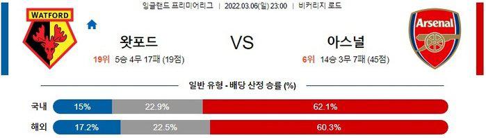 【프리미어리그】 3월 6일 왓포드 vs 아스날