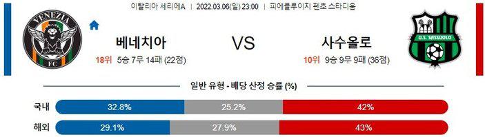 【세리에A】 3월 6일 베네치아 vs 사수올로 칼초