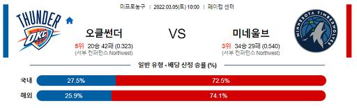 3월 5일 NBA분석 오클라호마시티 : 미네소타