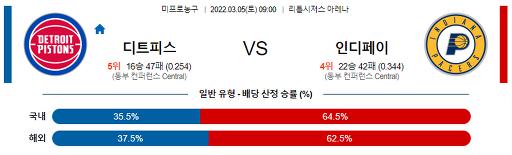 3월 5일 NBA분석 디트로이트 : 인디애나