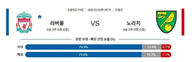 【잉글랜드 FA컵】 3월03일 리버풀 vs 노리치