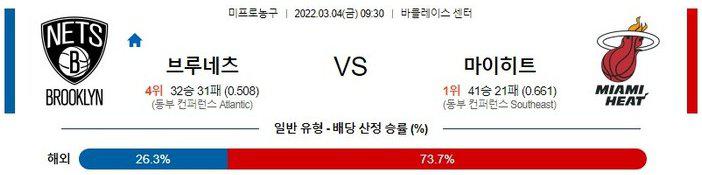 【NBA】 3월 4일 브루클린 네츠 vs 마이애미 히트