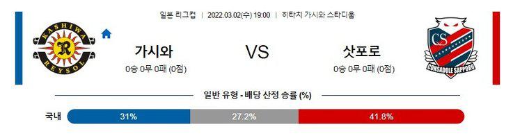 최근 삿포로가 보여주고 있는 전반 선제골-후반 동점골 패턴을 그대로 가져갈 가능성이 높다.결과는 가시와가 승리할 가능성이 조금 더 높아 보인다. 가시와의 열세가 점쳐져 있으므로 가시와 핸디(+1.0)승을 노려보는 것도 좋다. 가시와 승 / 가시와 핸디 승 / 오버(2.5)를 추천할 수 있다.