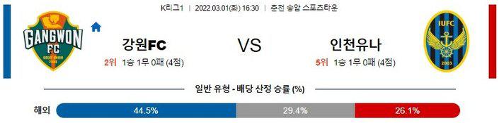[K리그] 03월 1일 강원 FC vs 인천 유나이티드강원 (리그 3위 / 승무)